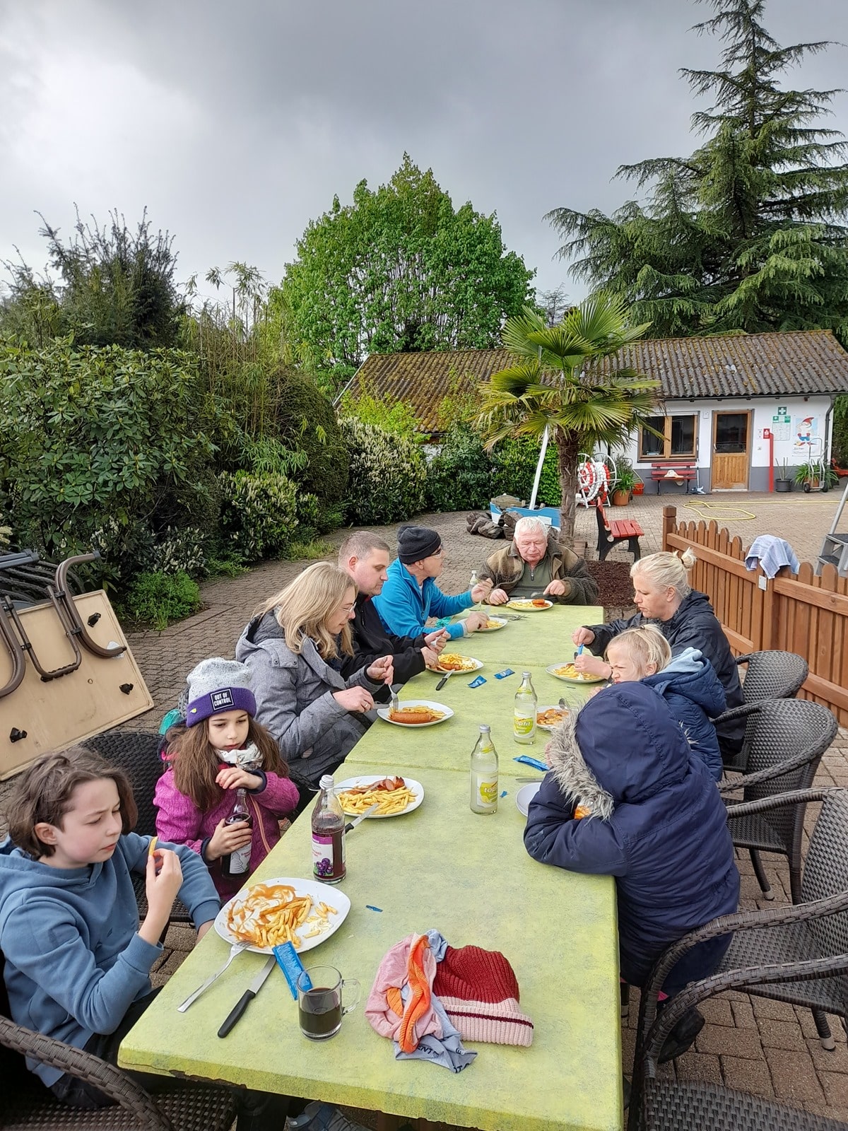 Das Wetter hatte am Samstag teilweise ein Einsehen mit den Helfern, und so konnte zumindest das gemeinsame Mittagessen, zubereitet von Kiosk-Pächter Meikel Bischler (www.bee-schwarzwald.de) in größerer Runde und bei Sonnenschein eingenommen werden.